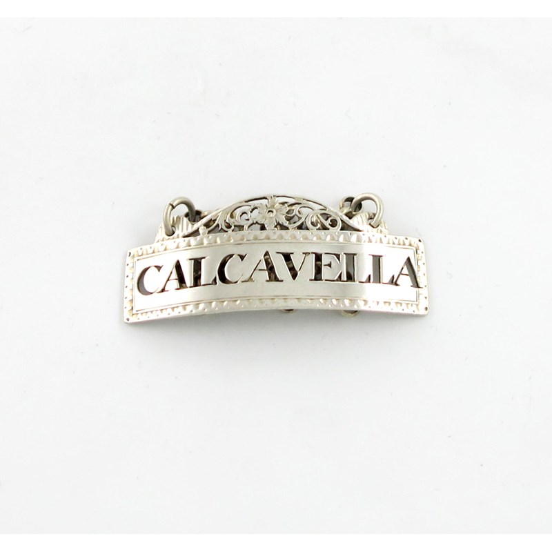 arched rectangular form, pierced pediment, bright-cut borders, pierced 'CALCAVELLA', length 4.6cm, approx. weight 0.3oz.