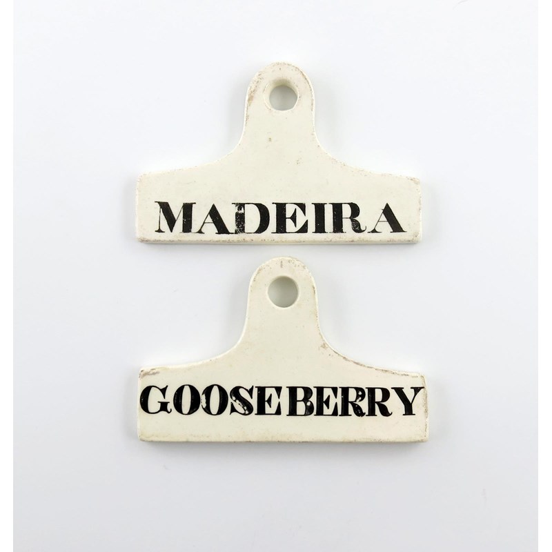 rectangular form, tapering arched tops, titled in black 'GOOSEBERRY' and 'MADEIRA', length 12cm. (2)