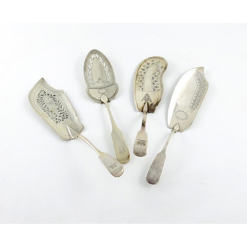 including one by John Emes, London 1806, one with a pierced and engraved fish, the others with pierced and engraved decoration, approx. weight 17oz. (4)