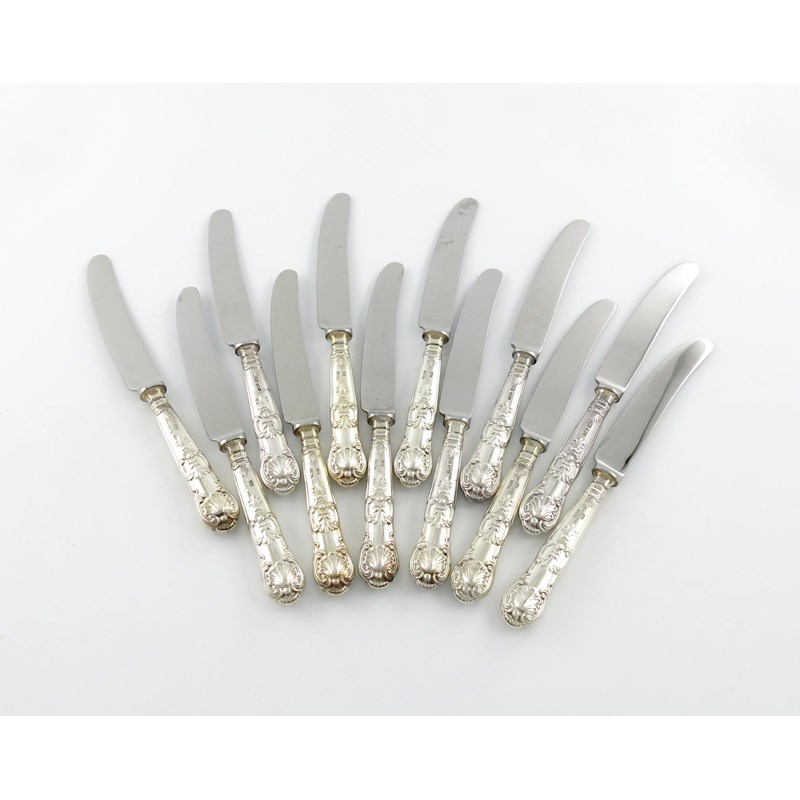 A modern set of twelve silver-handled Queen's pattern dessert knives