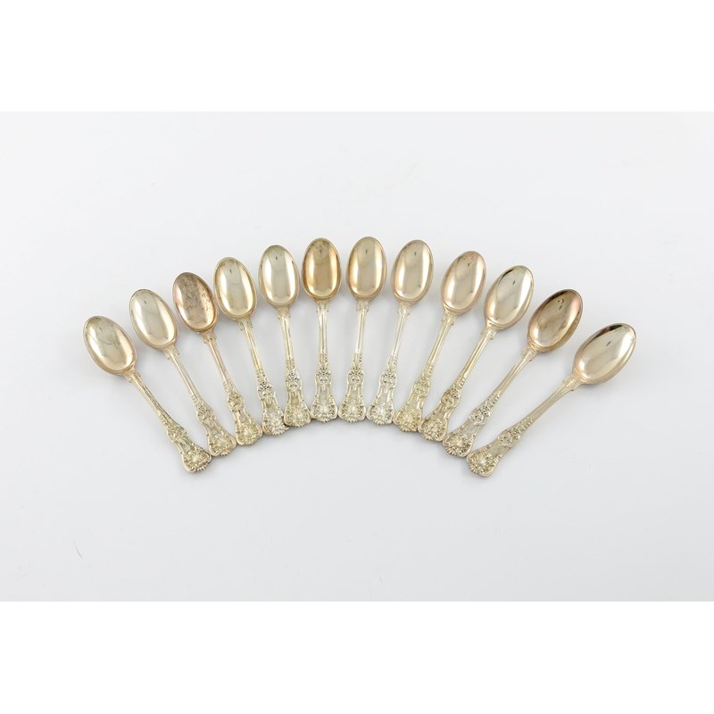 A set of twelve American silver Queen's pattern coffee spoons