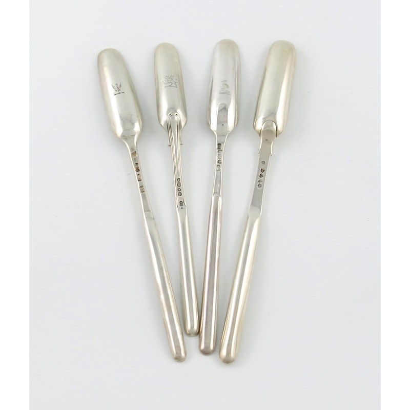 comprising: one of Fiddle and Thread pattern, by George Adams, London 1865, one London 1784, one London 1770, and a Fiddle pattern example, London 1813, three crested, approx. weight 6oz. (4)