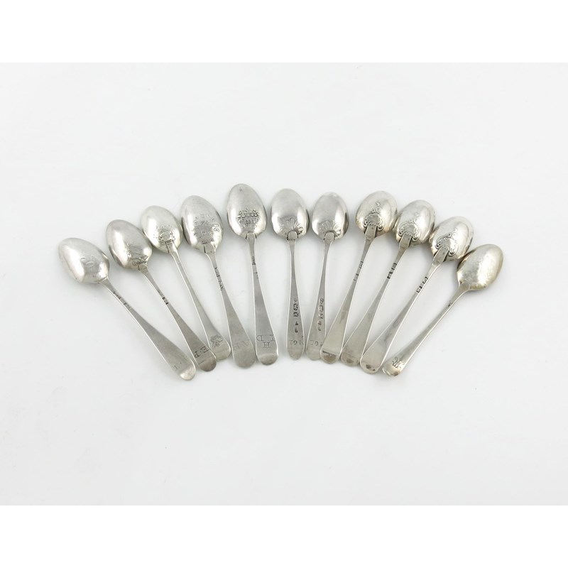 A collection of eleven silver 'Picture-back' teaspoons,