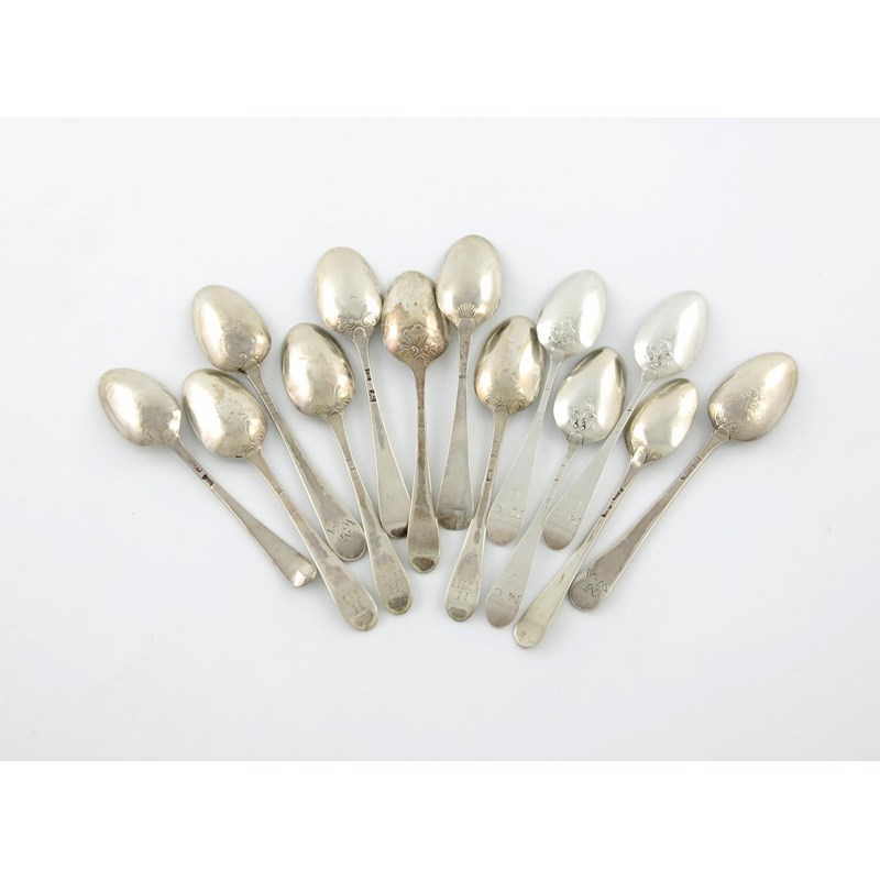 A collection of thirteen silver 'Picture-back' teaspoons,