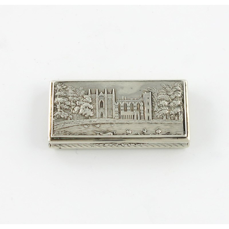 A Victorian silver 'castle-top' snuff box, Newstead Abbey,