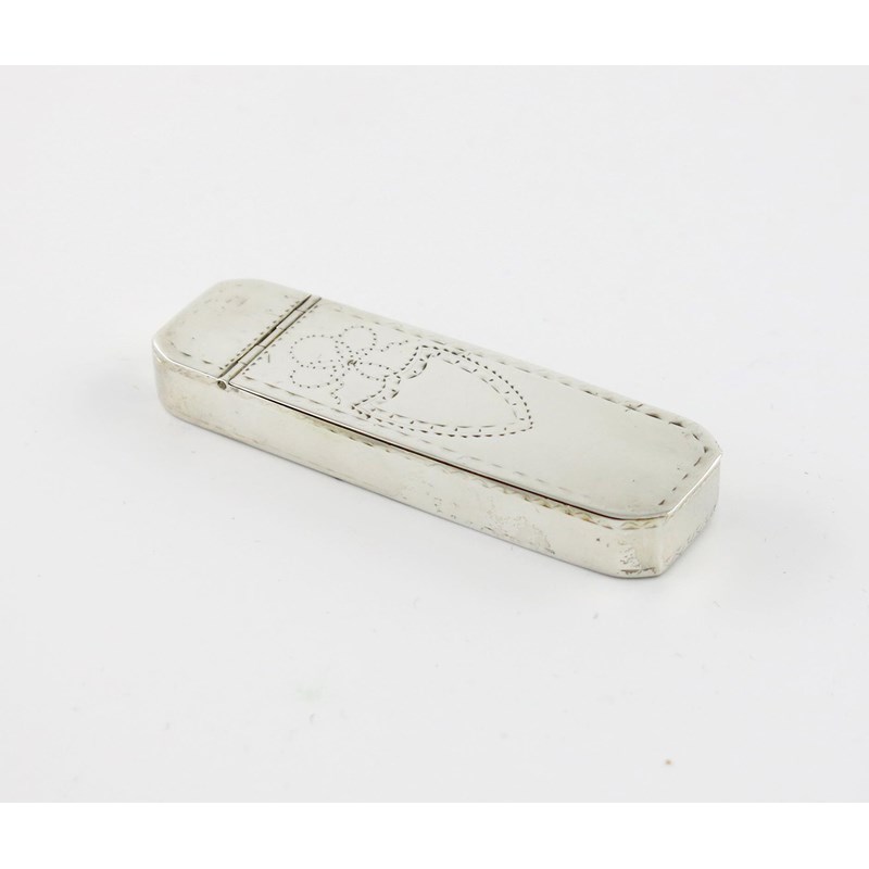 rectangular form, canted corners, engraved decoration, length 8cm, approx. weight 0.9oz.