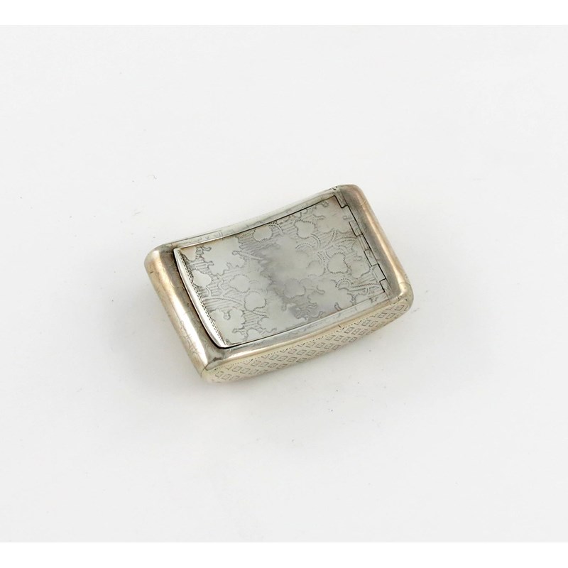 shaped rectangular form, the flush hinged cover and sides and base with engraved decoration, length 7cm, approx. weight 1.8oz.