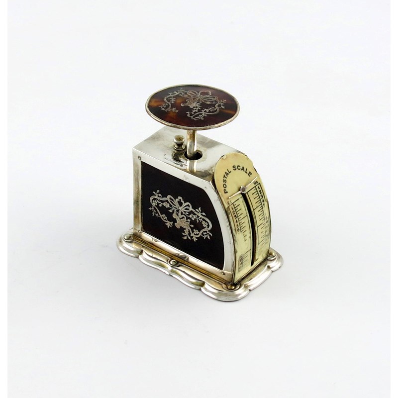 λA set of silver and tortoiseshell postage scales