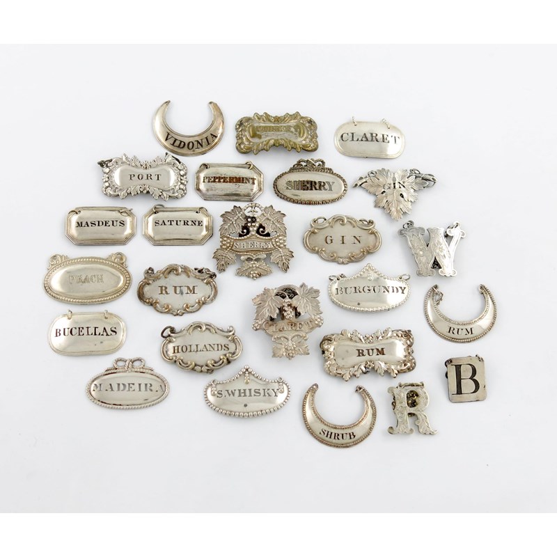 A collection of twenty-five old Sheffield plated and electroplated wine labels,