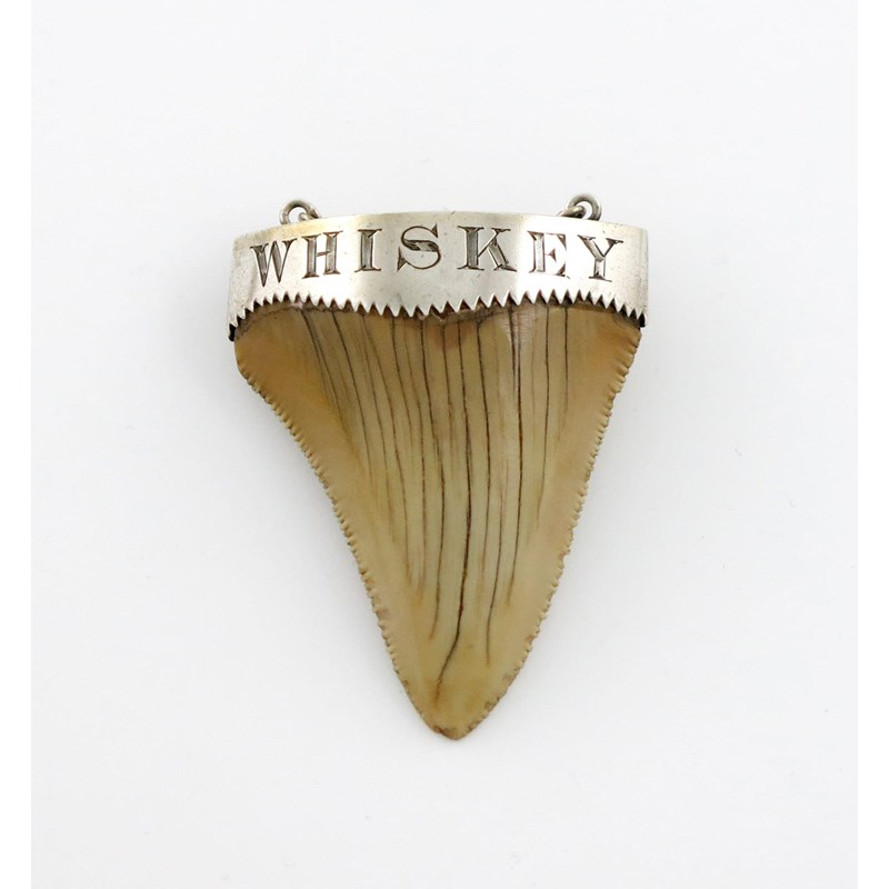 λA silver-mounted shark tooth wine label