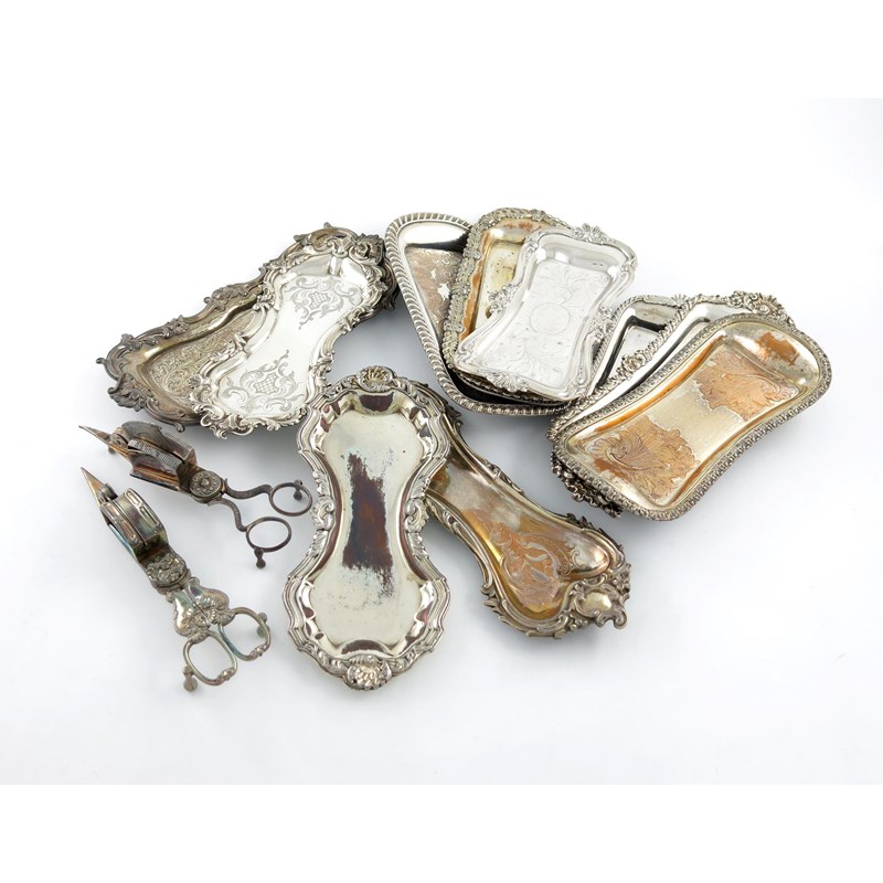 A collection of eleven old Sheffield plated snuffer trays,