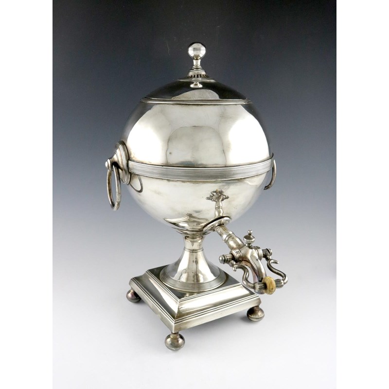 λA George III old Sheffield plated tea urn