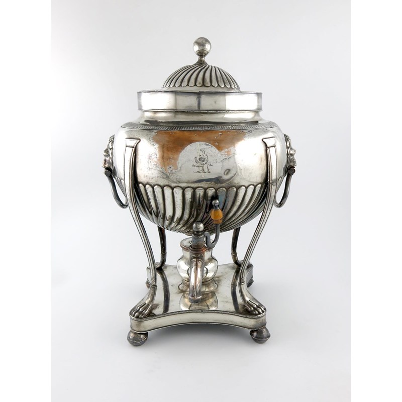 λA George III old Sheffield plated tea urn