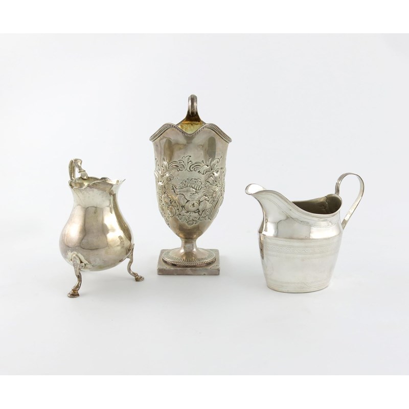 A small collection of three Georgian silver cream jugs
