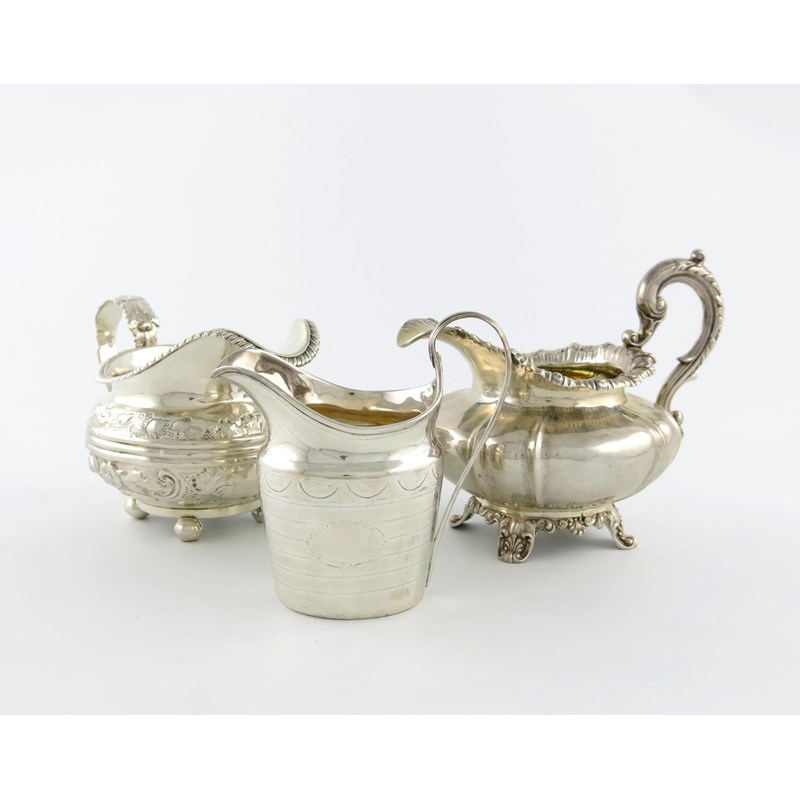A small collection of three antique silver cream jugs