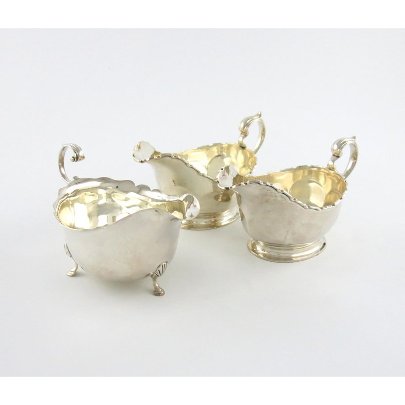 panelled oval form, scroll handles, plus a single silver sauce boat, approx. weight 12.4oz. (3)