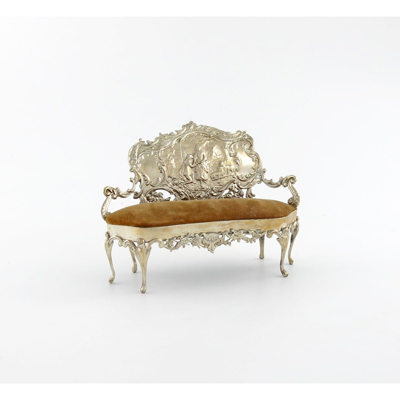 An Edwardian novelty silver sofa pin cushion
