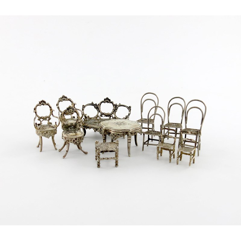 A collection of silver miniature furniture