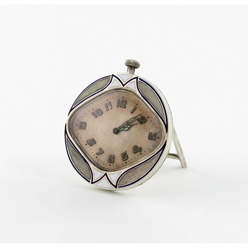 A metalware and enamel strut clock,