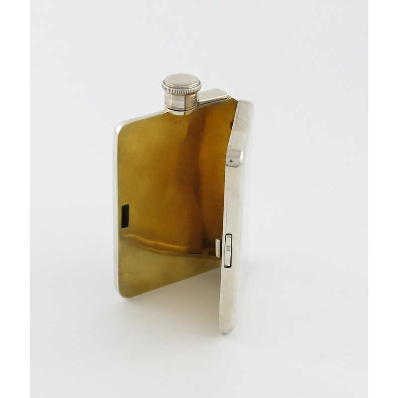 A silver combination hipflask / cigarette case