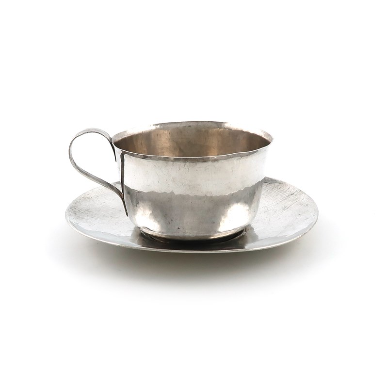 By Roy J James, a modern silver-gilt bracelet, London 1970, and a modern silver cup and saucer, London 1983,