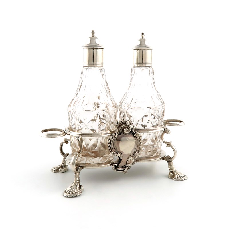 A George III silver oil and vinegar frame