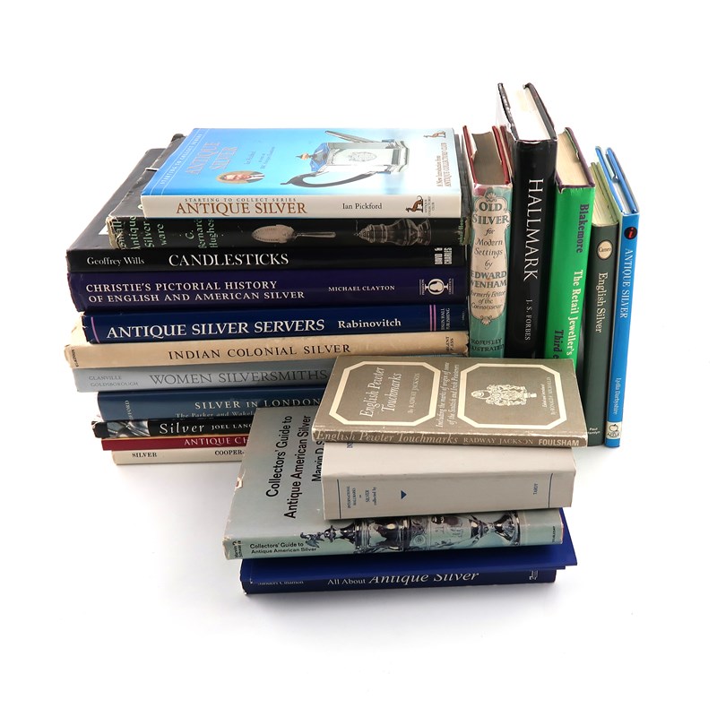 including: Wilkinson, W. Indian Colonial Silver, Argent Press, 1973, Antique Servers for the Dining Table, Women Silversmiths, 1685-1845, Silver in London The Parker and Wakelin partnership, Christie's pictorial History of English and American Silver, International Hallmarks by Tardy, plus other volumes. (qty)