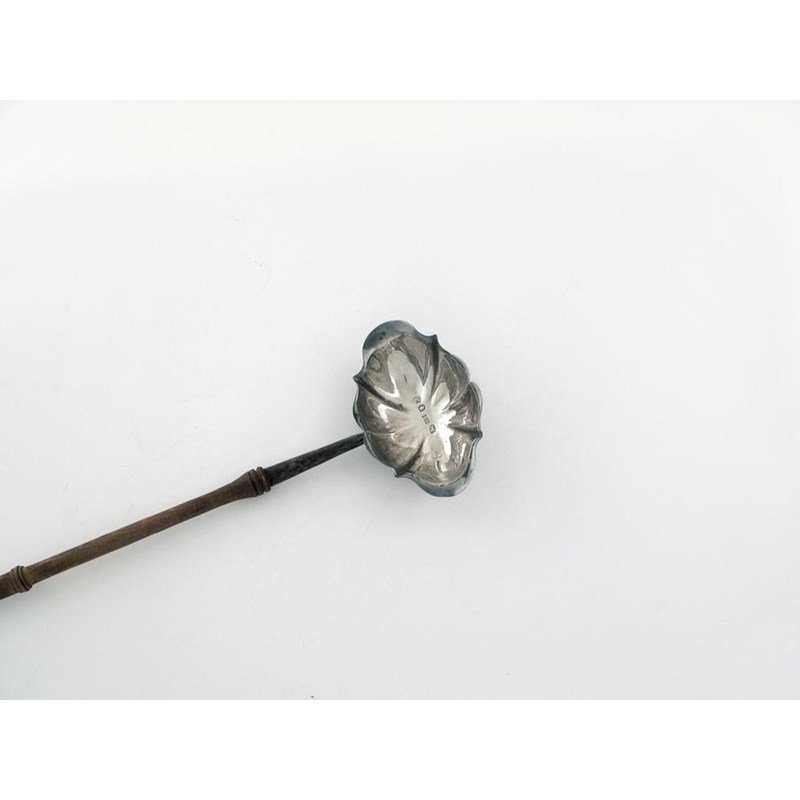 Hester Bateman; A George III double-lipped punch ladle, with a turned wood handle, initialled in the bowl 'I' over 'T.H.', London 1776, 13.25in (33.7cm) long.