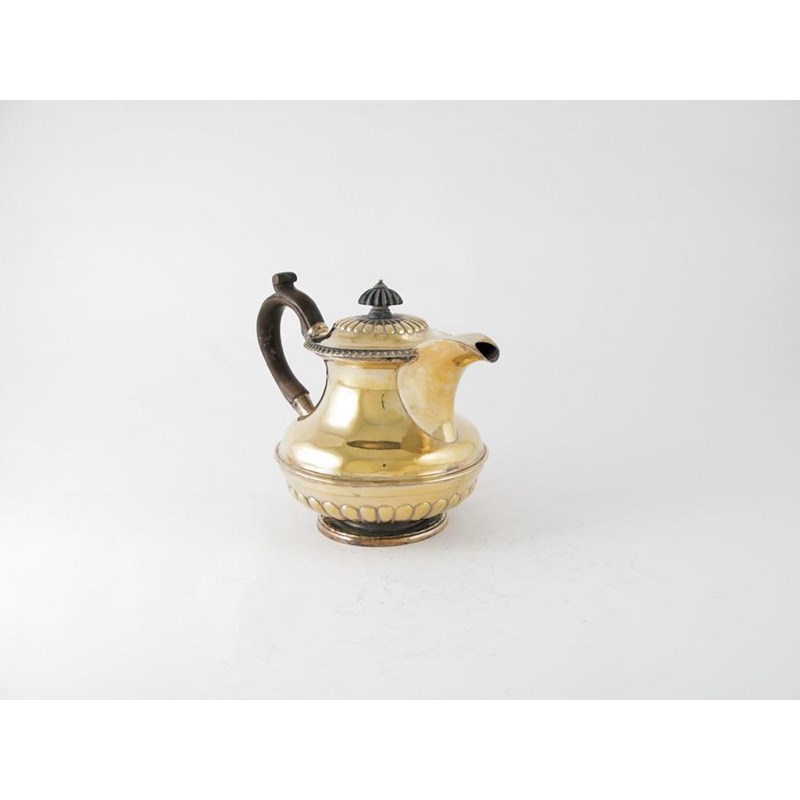 A George IV silvergilt hot water jug, with a waisted neck and part-fluted lower body, gadrooned border, maker's mark overstriking another, by George Burrows (II), London 1825, 6.5in (16.5cm) high, 16.5oz.