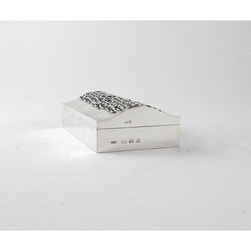 By Christopher. N. Lawrence: a modern cigarette box, oblong with a textured, domed cover, wood lined, London 1973, 6in (15.4cm) long.