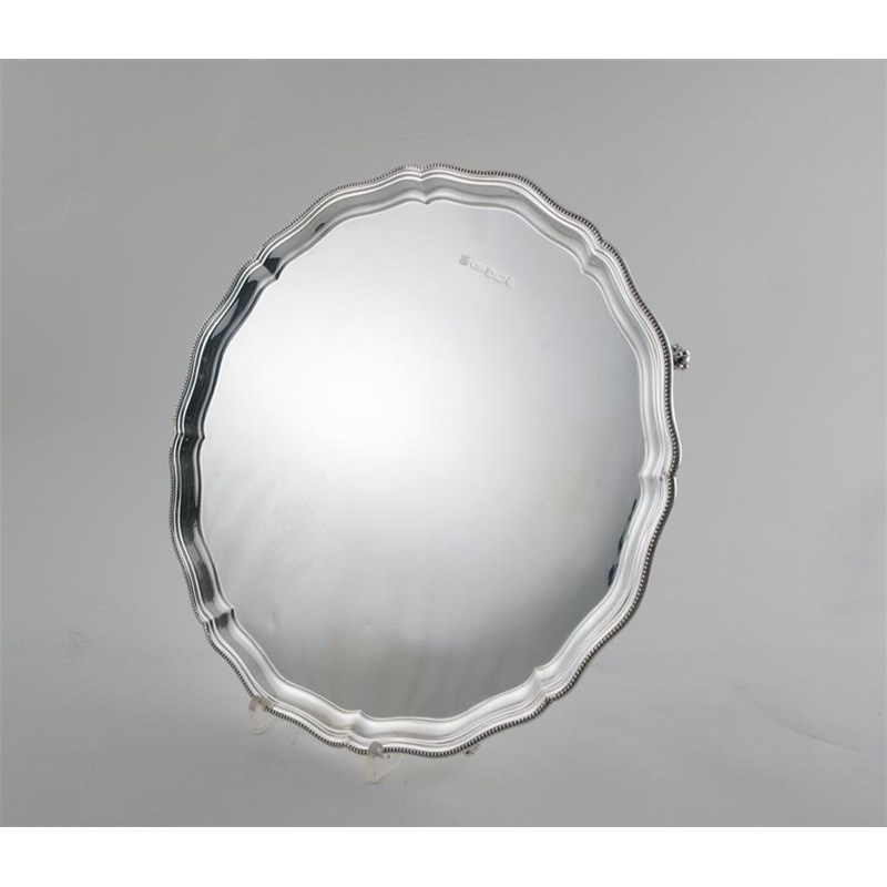 A shaped circular salver, with a bead border and ball and claw feet, by Barker Ellis, Birmingham 2001, 11.8in (30cm) diameter, 25.5oz.
