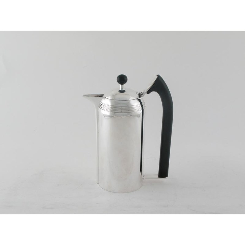 An art deco revival hot water jug, curved rod handle, by Mappin & Webb, Birmingham 1997, 7.4in (18.7cm), 15.5oz.