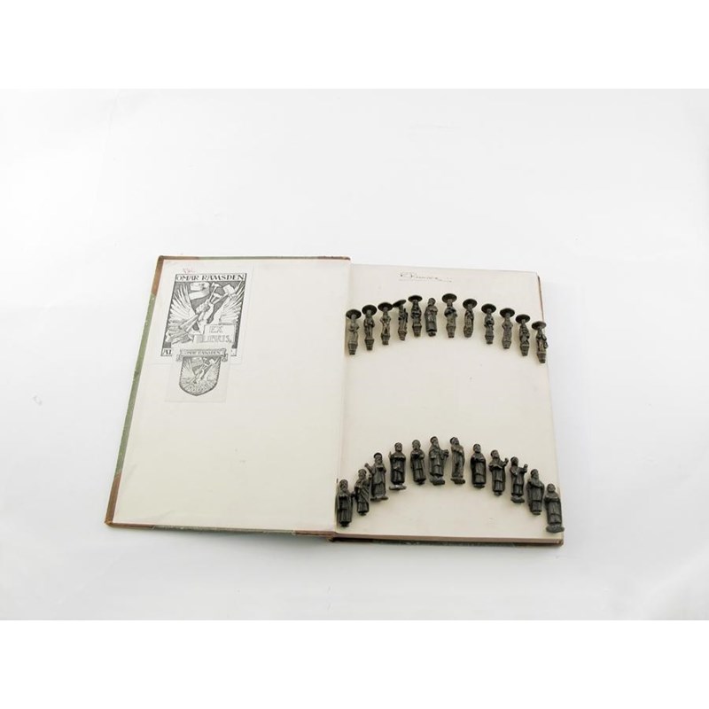Omar Ramsden: twelve cast brass apostle figures (11 with large nimbi and one small) - from the workshops of Ramsden, approximately 1.6in (4.2cm) high. (12)