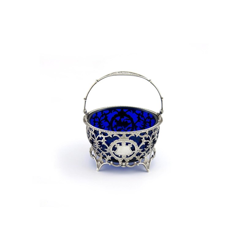 A silver swing-handled sugar basket,
