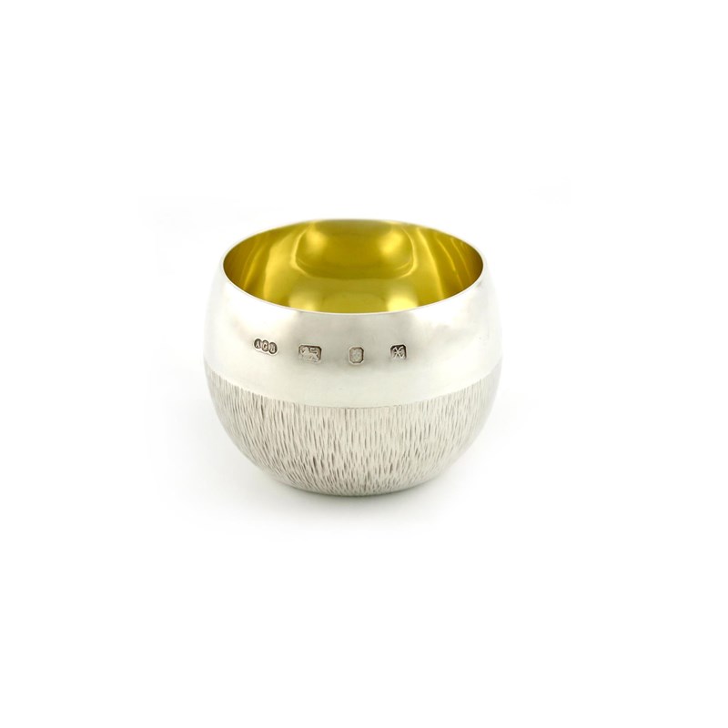 circular bellied form, textured decoration, gilded bowl, height 5cm, approx. weight 3.3oz.