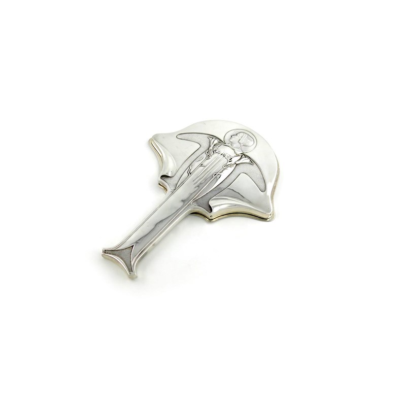 Designed by Kate Harris for William Hutton and Sons Ltd, an Edwardian silver hand mirror,