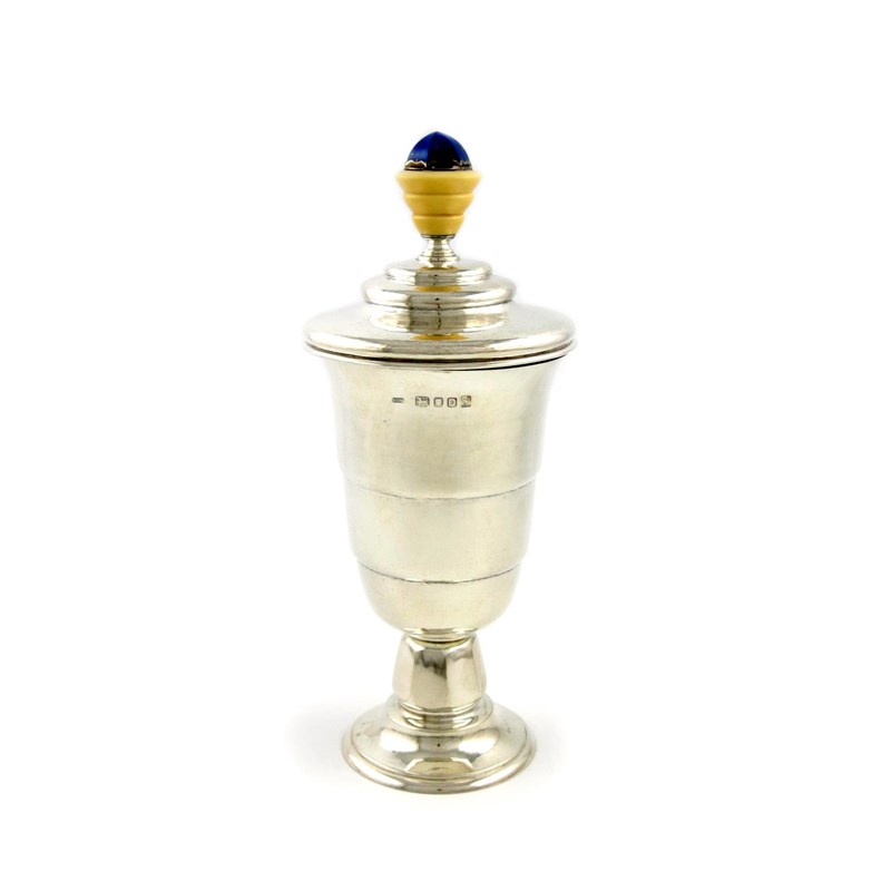 λBy H.G. Murphy, a silver, Lapis Lazuli and ivory Art Deco cup and cover,