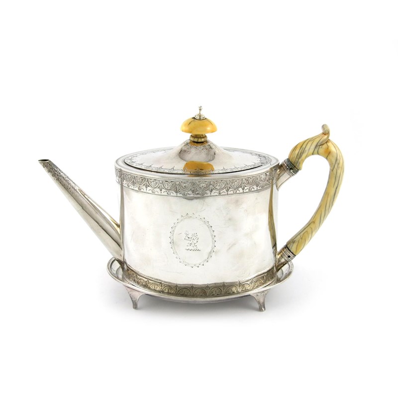 the teapot by Henry Chawner, London 1791, the stand by Elizabeth Jones, London 1791,