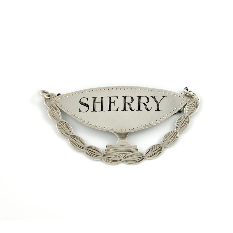 goblet form, bright-cut border, pierced apron, incised 'SHERRY', length 7.3cm, approx. weight 0.3oz.