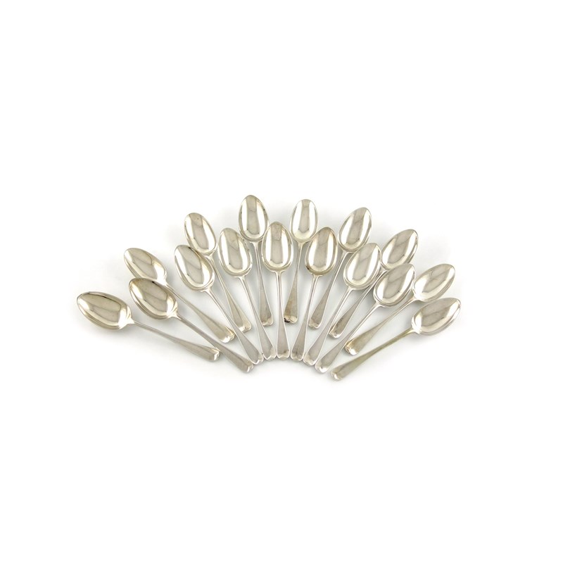 A matched set of sixteen Hanoverian pattern silver dessert spoons
