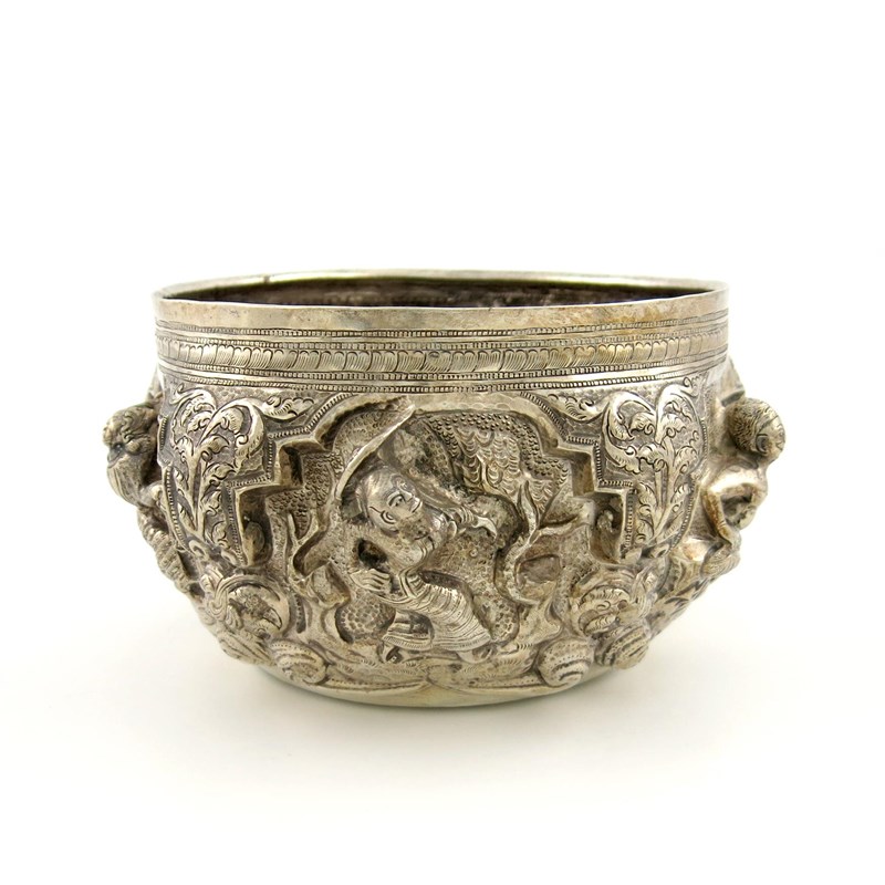 A Burmese silver rice bowl