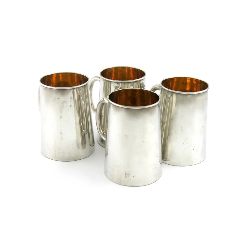 tapering circular form, scroll handles, gilded interiors, height 12.2cm. (4)