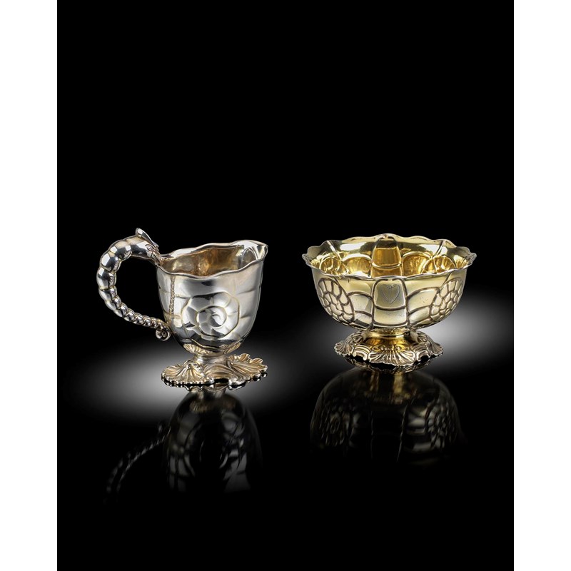 the cream jug unmarked, the sugar bowl by Elizabeth Godfrey, London 1751,