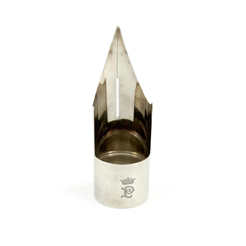 the front with a crowned initial, with a pen rest, later glass liner, height 13.8cm, approx. weight 2.1oz.