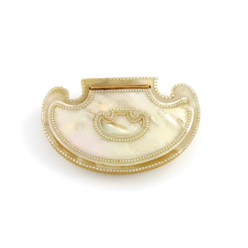 An early 19th century French gold-mounted mother-of-pearl snuff box