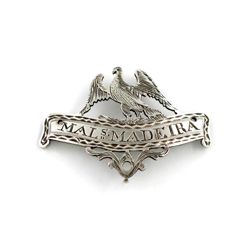 banner form, bright-cut border, applied with a bird with spread wings, incised 'MALS. MADEIRA', length 4.5cm, approx. weight 0.1oz.