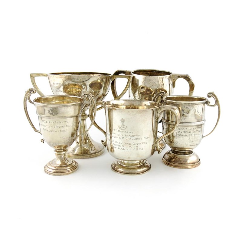 comprising: an Indian one by Hamilton and Co, 'inscribed '52 Light Infantry Victor Ludorum Cup', plus one Birmingham 1923, and three others, approx. weight 60oz. (5)