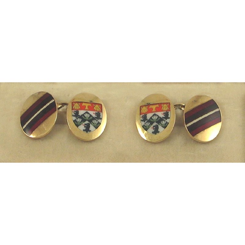 A pair of 9ct gold cufflinks, decorated with enamel arms, cased.