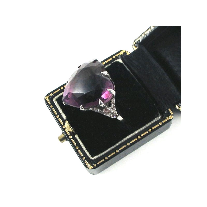 A heart shaped amethyst ring, set in gold with diamonds to each 'v' form shoulder.