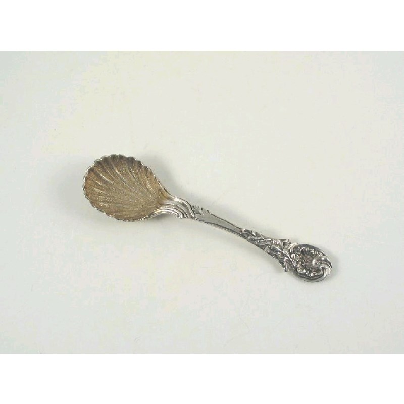 A Victorian east preserve spoon, with gilt shell bowl and a rocaille stem and terminal by John E. Terry, London 1847, 6.9in (17.5cm), 2.5oz.